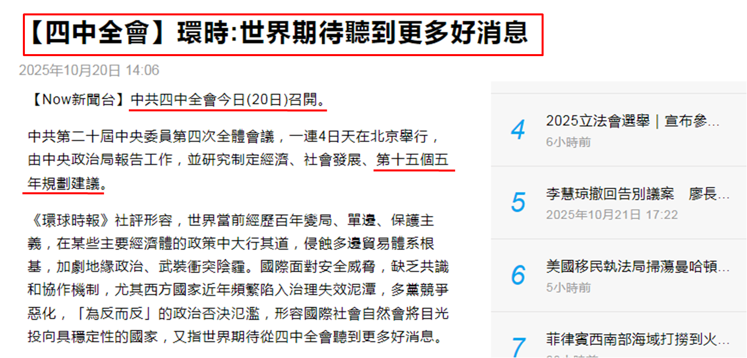 参考10月10和13日之间的下跌裂口介乎26,247至25,895点,即周二恒指高位曾成功回补此裂口。不过开市不足两小时恒指回软,最终升幅不足170点,收报26,027点,意味着从高位下行逾300点,当时却未见负面消息,故不排除若干投资者见恒指冲高在裂口之上,于是趁高伺机离场。周一内地公布9月「三头马车」(消费、工业、固投) 数据,并第三季经济增长表现,又是四中全会开幕,为未来五年中国经济社会发展 (「十五‧五」规划) 确定基本政策方向;官媒《环球时报》于社评指全球各地都期待从四中全会听到好消息。