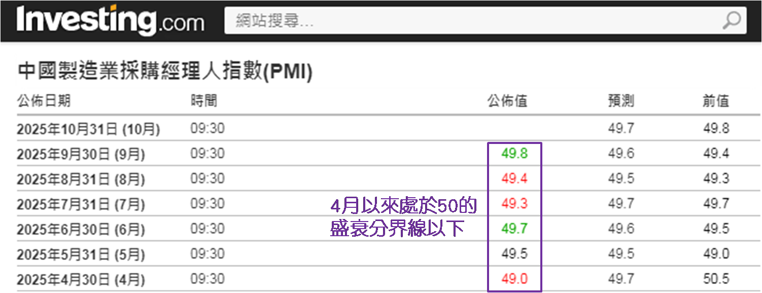 港股上扬时交投未见配合,就算恒指再升亦难走得太远,面对中美经贸关系有所缓和,相信市场转为关注内地经济表现。焦点落在10月31日公布的10月份官方采购经理指数 (PMI),暂见制造业PMI预期值为49.7,略低于9月值的49.8,继续在50的盛衰分界线以下,制造业仍在收缩状态。不过穆迪分析的经济学家表示,指数可能在10月小幅升至50,回到中性门坎。倘真如穆迪看法,港股迎来进一步上扬诱因。目前大市成交额变化较值得留意,短期能否重上3,000亿元或以上是关键。